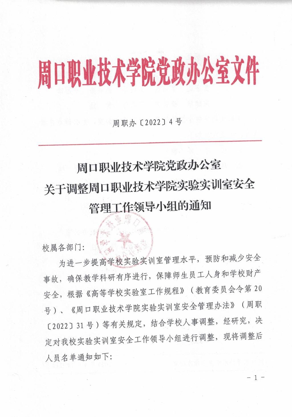 关于调整学校实验实训室安全管理工作领导小组的通知